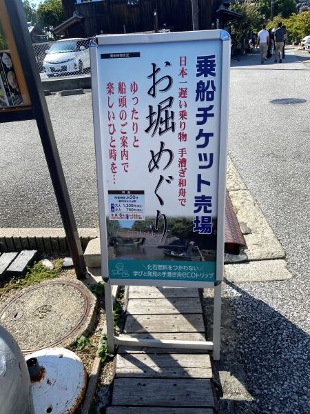 看板を見ると、手漕ぎ和舟でのお堀めぐりだった。
