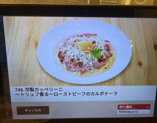 「~冷製カッペリーニ~トリュフ香るローストビーフのカルボナーラ」をオーダー。