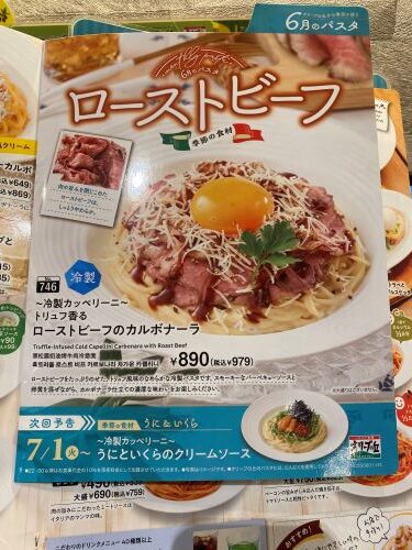 「ローストビーフの冷製パスタ」という幟を見かけた。