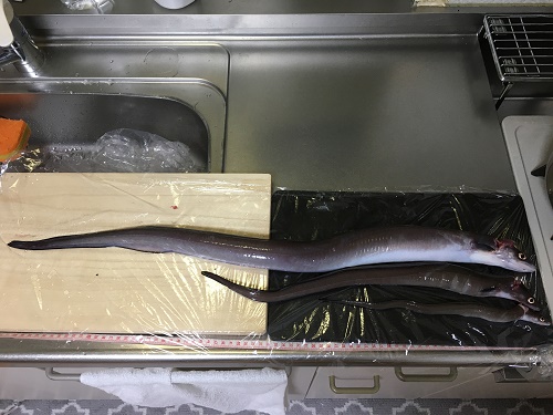 その後、大きなアナゴが釣れ(74cm!!)、エサが終わったので終了。