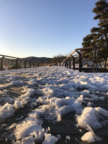 数日前に雪が降ったらしく路肩には除雪された雪がたくさん!