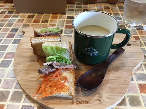 サンドイッチとスープのセット(600円)にするとお得ですよと