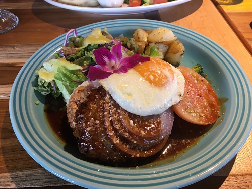 ロコモコ、ハンバーグがジューシーで美味しかった。