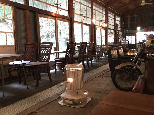 ひざ掛けもあるし、ストーブや七輪もあちこちに設置してある。
