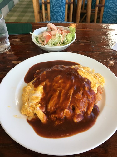 途中、湖を見渡せるカフェでオムライスを食べる。