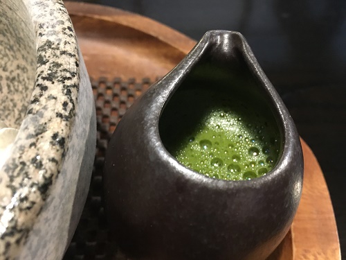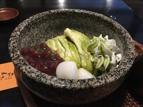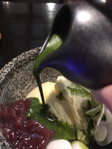 オーダーをしてから点てた熱い濃厚抹茶をかけて食べるという。