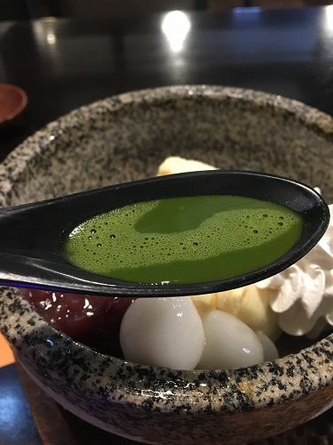 抹茶を入れて食べると美味しいですよ、と店員さん。
