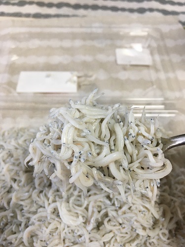 タッパーに入ったシラスとネギをパラパラとトッピング。