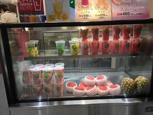 目の前でフレッシュジュースを作っているのを見る事ができる。