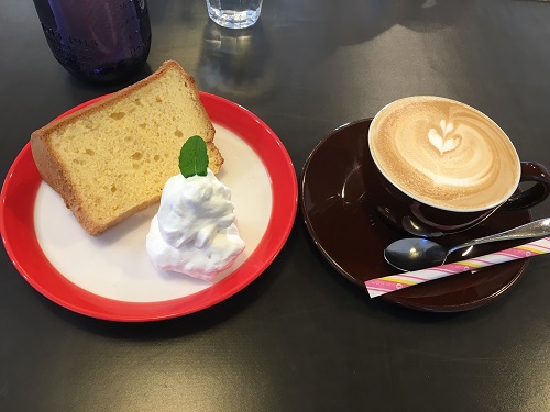 カフェ・ラテとシフォンケーキをオーダー。