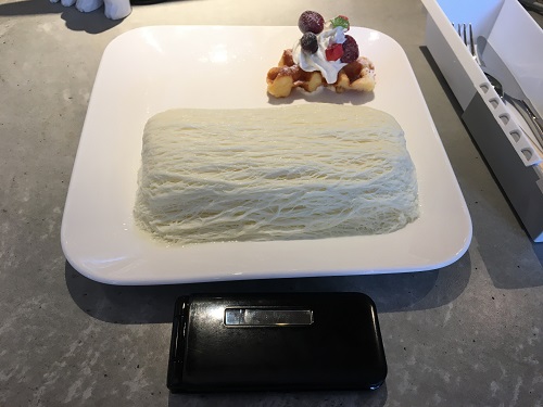 冷えたお皿の上に白い糸ピンスがどん!と乗っている。