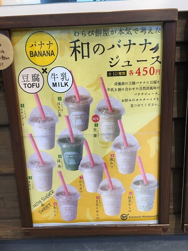 「わらび餅屋が本気で考えた和のバナナジュース」という看板が!!