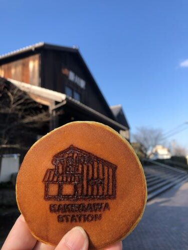 抹茶どら焼きは掛川駅とコラボしたどら焼きで駅舎の焼き印がしてある。