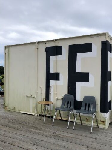 お店の隣にもあるコンテナ風の建物の中にも椅子などが置いてある。