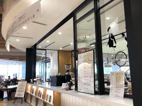 複合施設の2階にある「まちなか図書館」の中にカフェ。