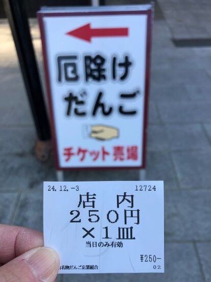 厄除け団子も250円と値上がりしてしまったけれど、迷わず買う!