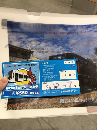一日フリー乗車券と記念品などを受け取る。