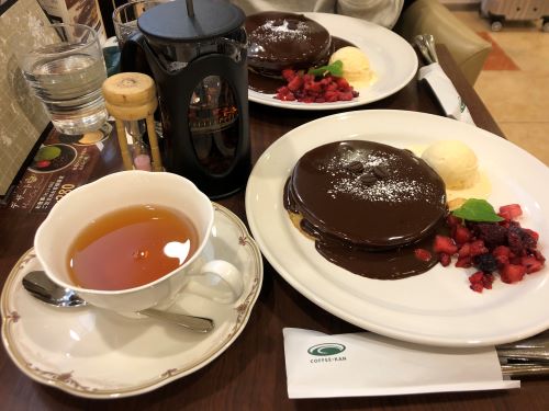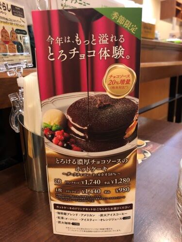 「とろける濃厚チョコソースのホットケーキ」のドリンクセットをオーダー。