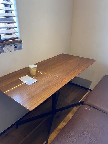 壁際のテーブル席、ソファーはフカフカ、Free-Wi-Fiもある。