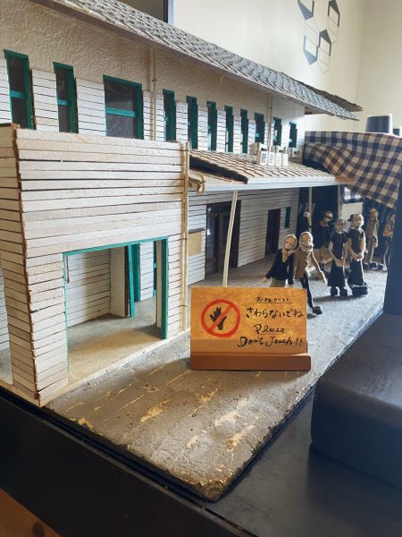 カウンターにある新金谷駅の模型の前に購入したものを置くことは不可。