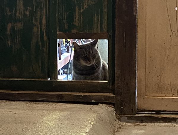 カフェの出入り口にはニャンズ用の出入り口もあった。