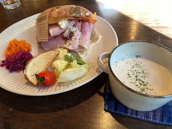 管理人は「ハム&トマト&チーズのパニーニ(サラダ、季節のスープ付き)」