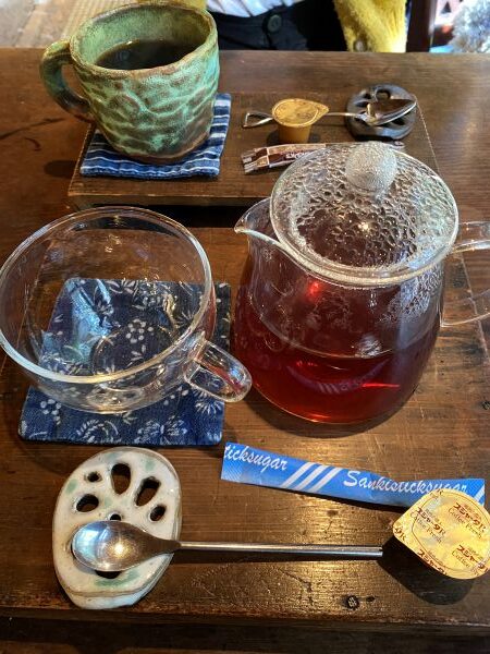 撫でたりしているのでなかなかカフェの中に入れない(笑)