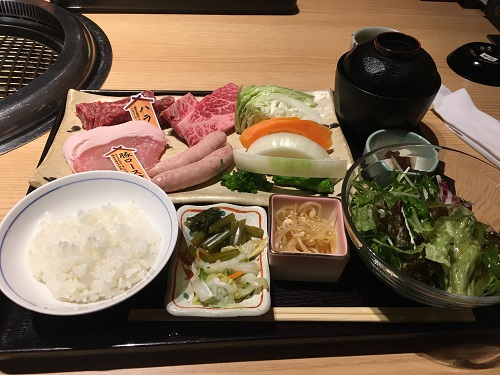 ソーセージ、カルビ、ハラミ、豚ロースなどは