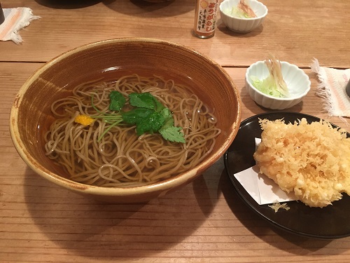 二人とも「天ぷら蕎麦(芝海老のかき揚げ付き)をオーダー。