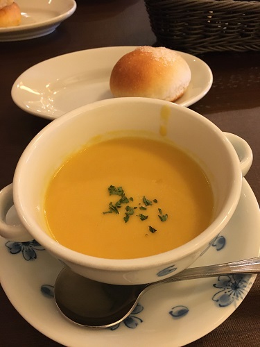 スープは伊勢海老のスープのコーンポタージュを選べたので