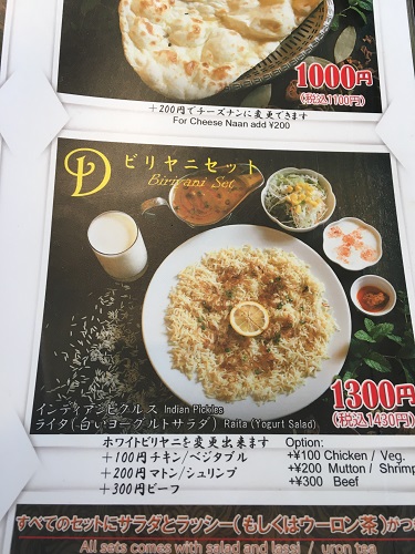 チキンビリヤニにして、カレーはチキンカレー(辛さレベル3)