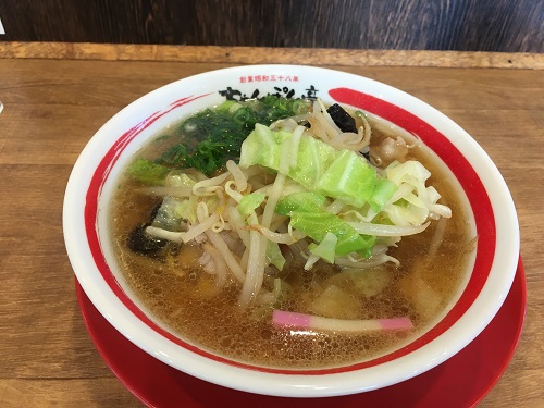 野菜がたくさん乗っているので麺を食べるには最初に野菜を食べなければならない。