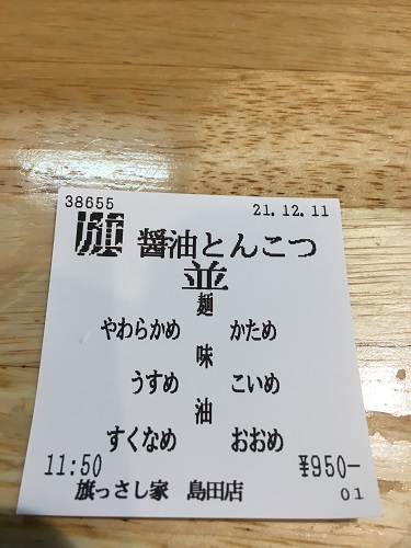 「旗っさし醤油とんこつ(並)」をオーダー。