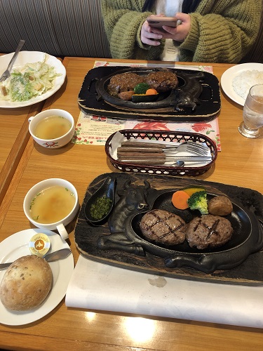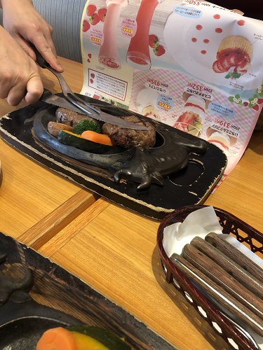 Sちゃんはいつもの「げんこつハンバーグ(250g)」にライスを。