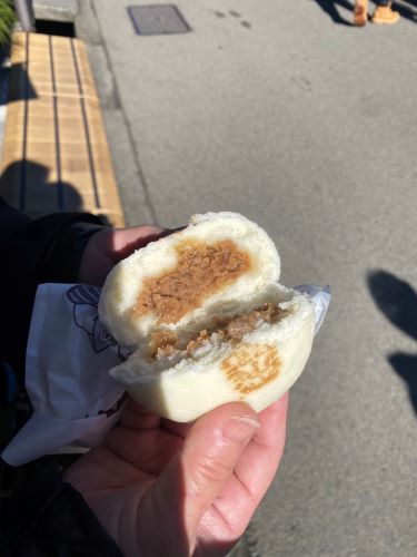 中身がぎっしりと詰まった味噌味の飛騨牛まん。