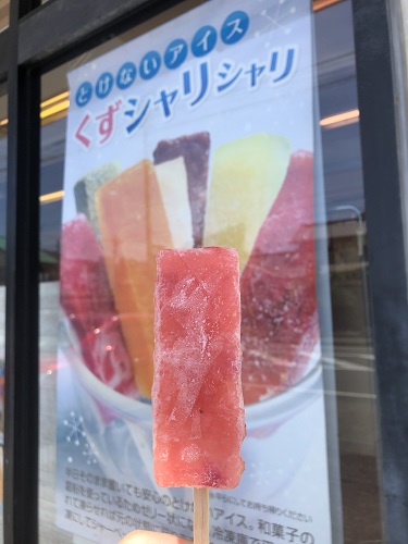 車の中もとても暑く、溶けないアイス「くずシャリシャリ」を買おうと