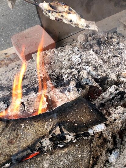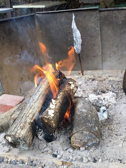 少し肌寒かったので、炭火で焼いている近くで暖を取りながら