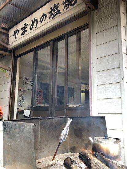 狭い道を抜けて最初にあるやまめの塩焼きが絶品のお店。
