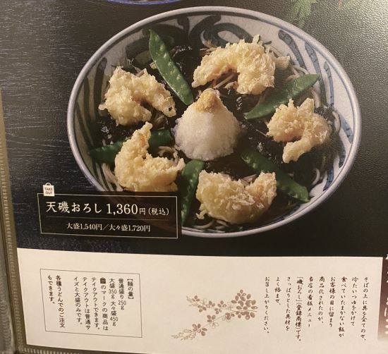 JR静岡駅 ASTY静岡東館に「天磯おろし」で有名な「戸隠そば」があるのを見かけた。