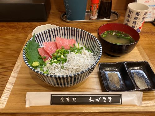 (南マグロ中トロ3枚、茹でシラスの2色丼)にしてしまった!