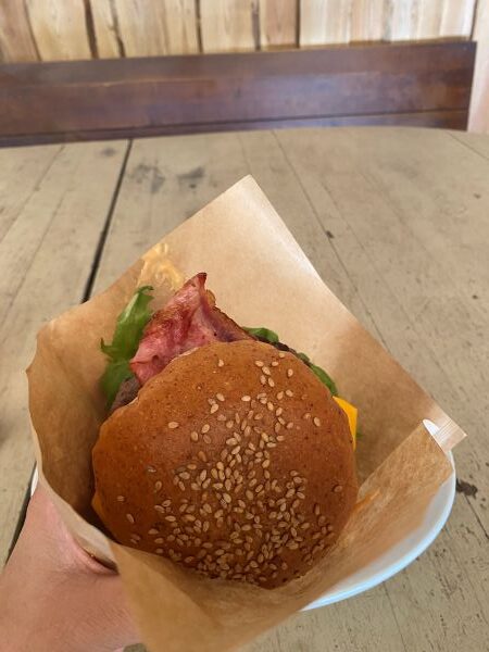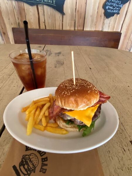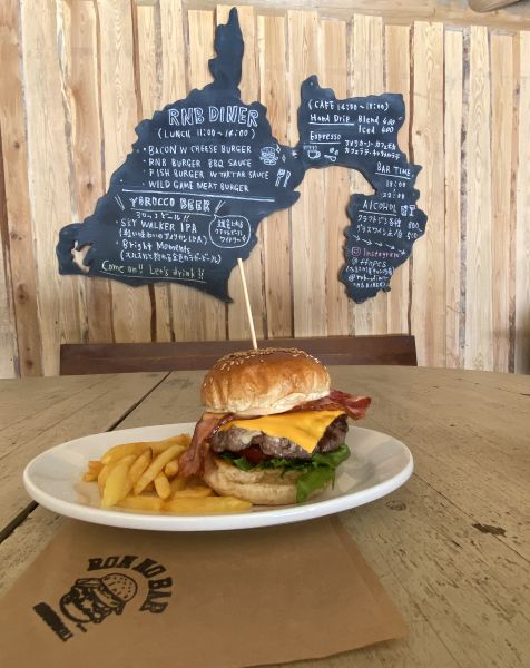 ハンバーガーを包むための紙には「RON NO BAR」とプリントされている。