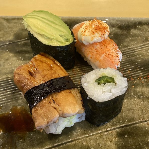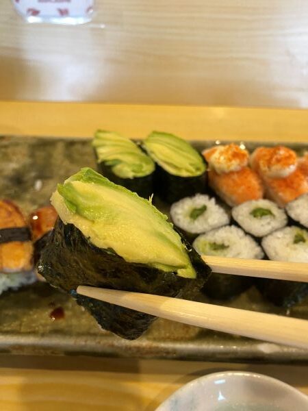 ・アボガド クリーミーなアボガドの軍艦で醤油を付けて食べる。とってもクリーミー。