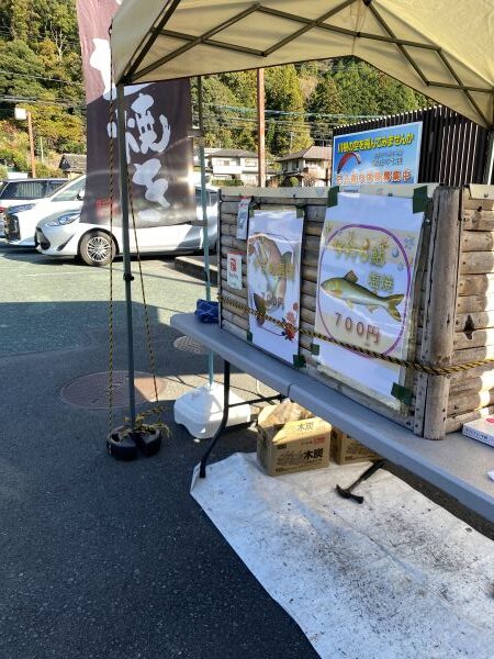 道の駅の駐車場の片隅で鮎とやまめの塩焼きを売っている屋台があった。