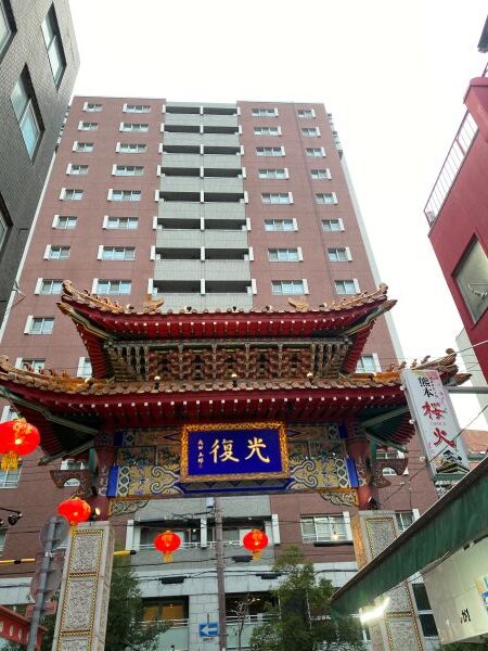 三方向に中華街特有の大きな門があることに気付いた。