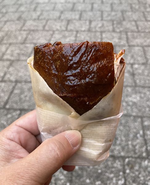 甘口の特製ソースをつけることが伝統的な食べ方とされています。