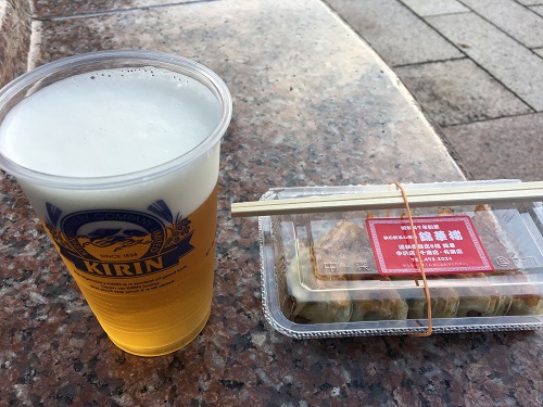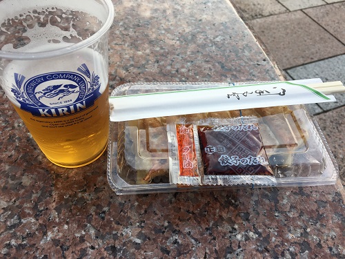 次は「錦華楼」の餃子とビールを買ってくる。