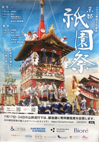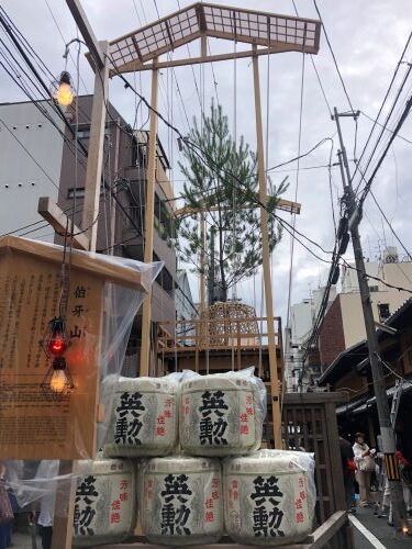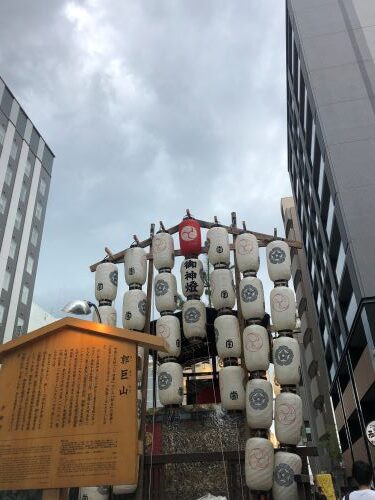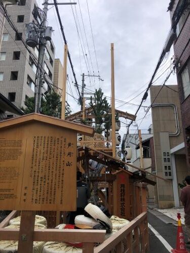 鶏鉾が巡行開始後に車輪の破損で四条通で立ち往生してしまったらしい。