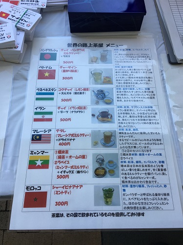 ・モロッコ の7ヶ国のお茶が飲めるらしい。