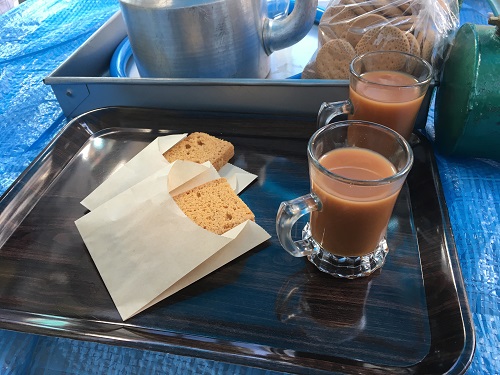 バングラ式ミルクティー(チャイ)とラスク。