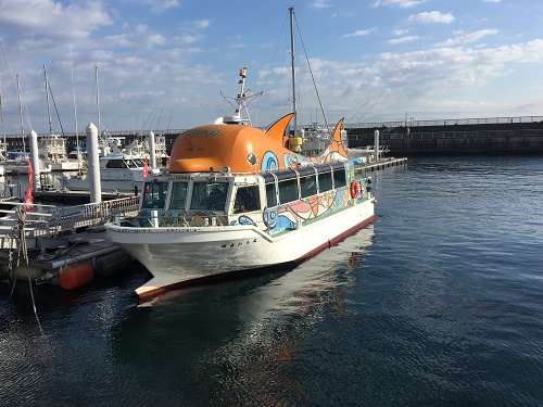 遊覧船が停まっていて、スタッフの方に「どうですか?」と聞かれる。